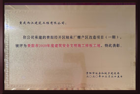 贵阳华润悠山悦景项目被评为贵阳市2020年建筑安全文明施工样板工地